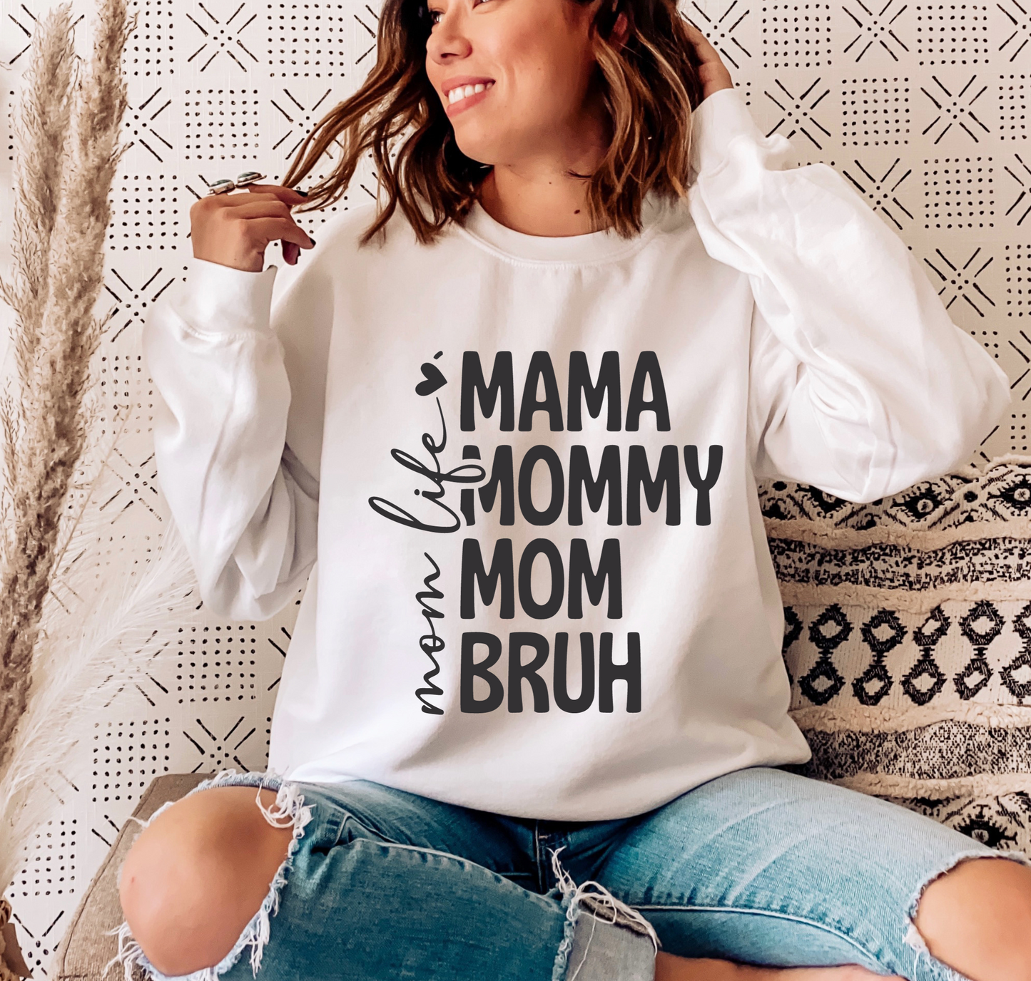 Mama Mommy Mom Bruh SVG Digital Cut File including 2 (Black & White) SVG & PNG TRANSPARENT BACKGROUNDS - to be used with cutting machines - DIGITAL DOWNLOAD